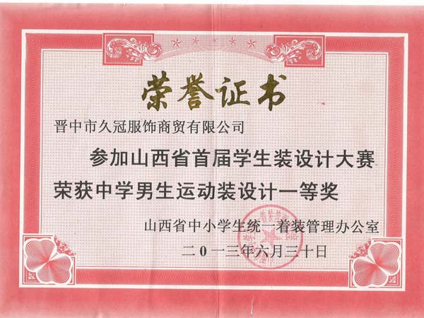 山西久冠服飾有限公司位于晉商故里山西省晉中市。公司注冊商標(biāo)“久冠”,是山西省教育學(xué)會學(xué)生服被裝專業(yè)委員會會長單位,中國質(zhì)量萬里行促進(jìn)會理事單位,中國教育裝備行業(yè)協(xié)會學(xué)校后勤裝備管理分會常務(wù)理事單位。
